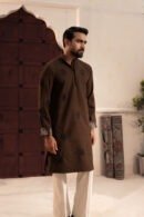 Crafted in a refined ciel hue and elevated with intricate embroidery and delicate zari work along the sleeves, this silhouette reflects heritage craftsmanship through modern restraint.