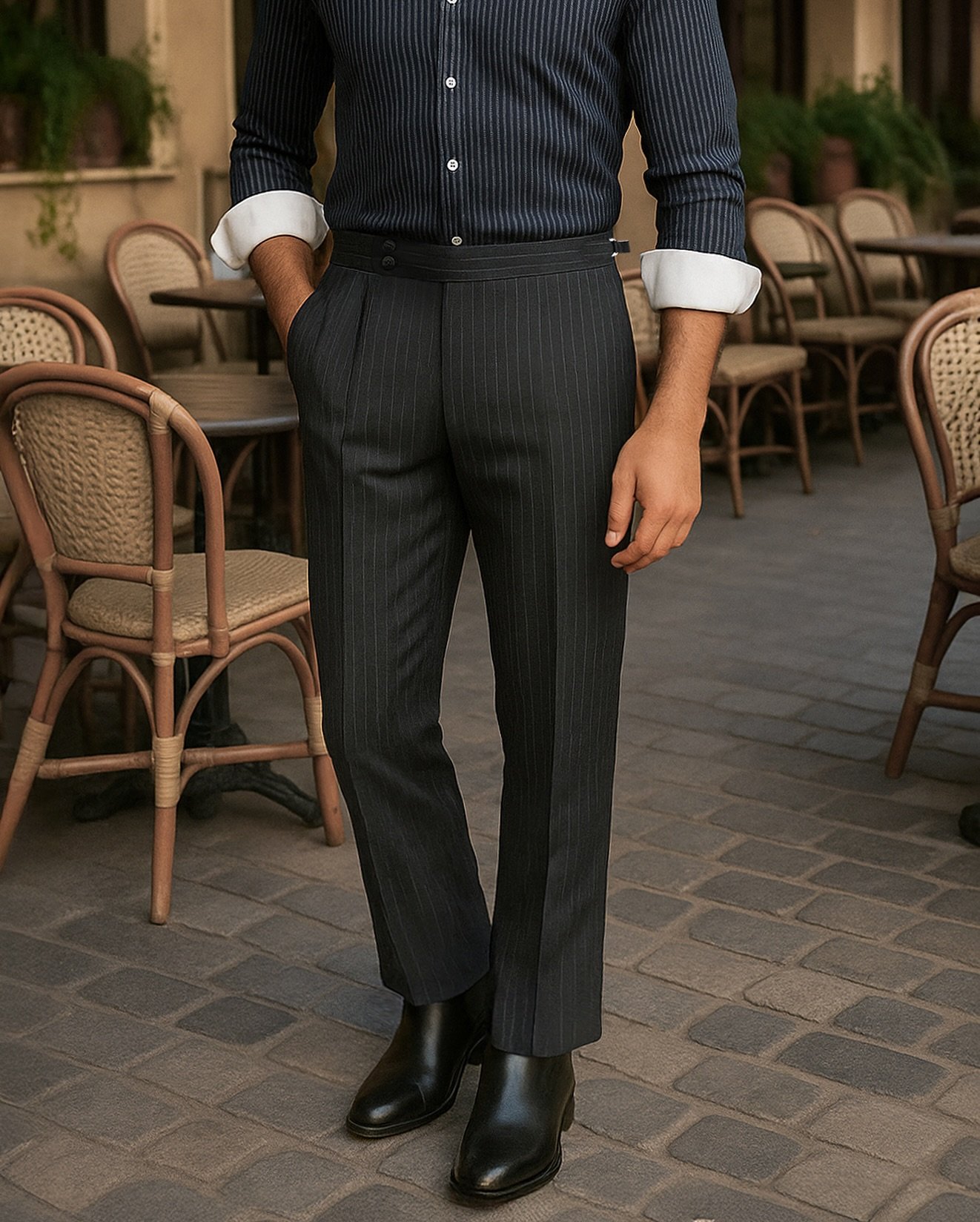 Dark Grey Pinstripe Bootcut Gurkha Pant
