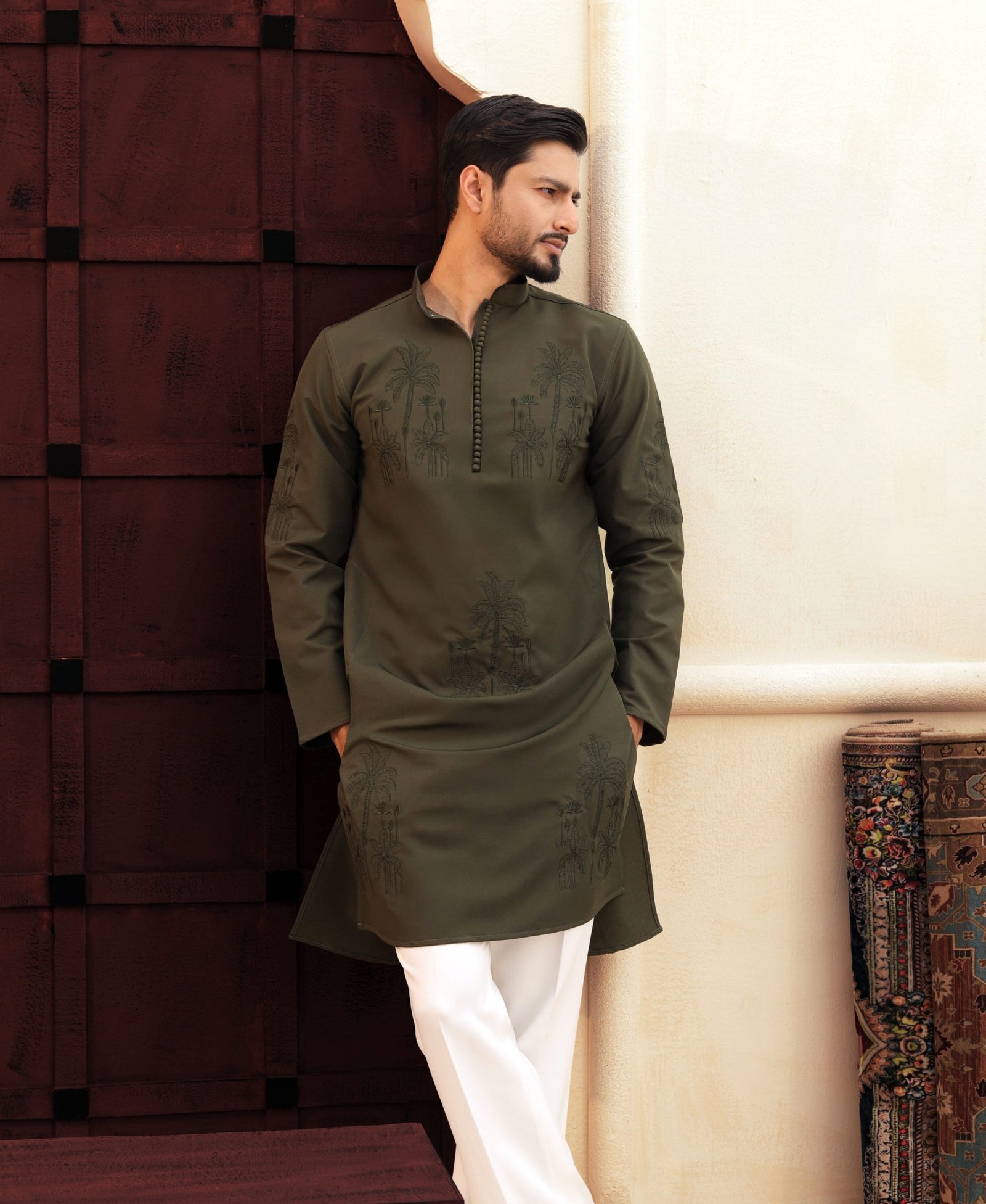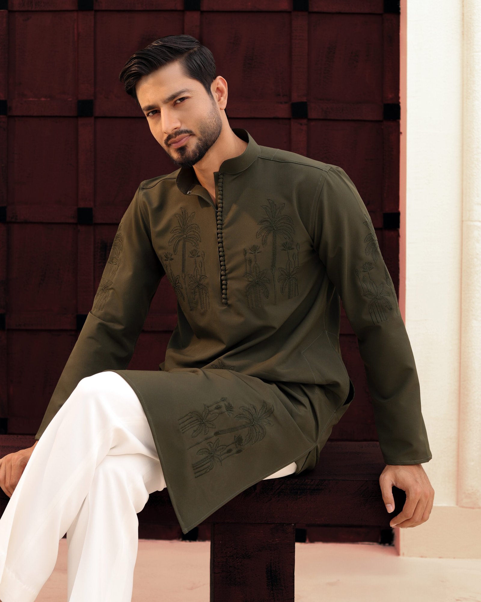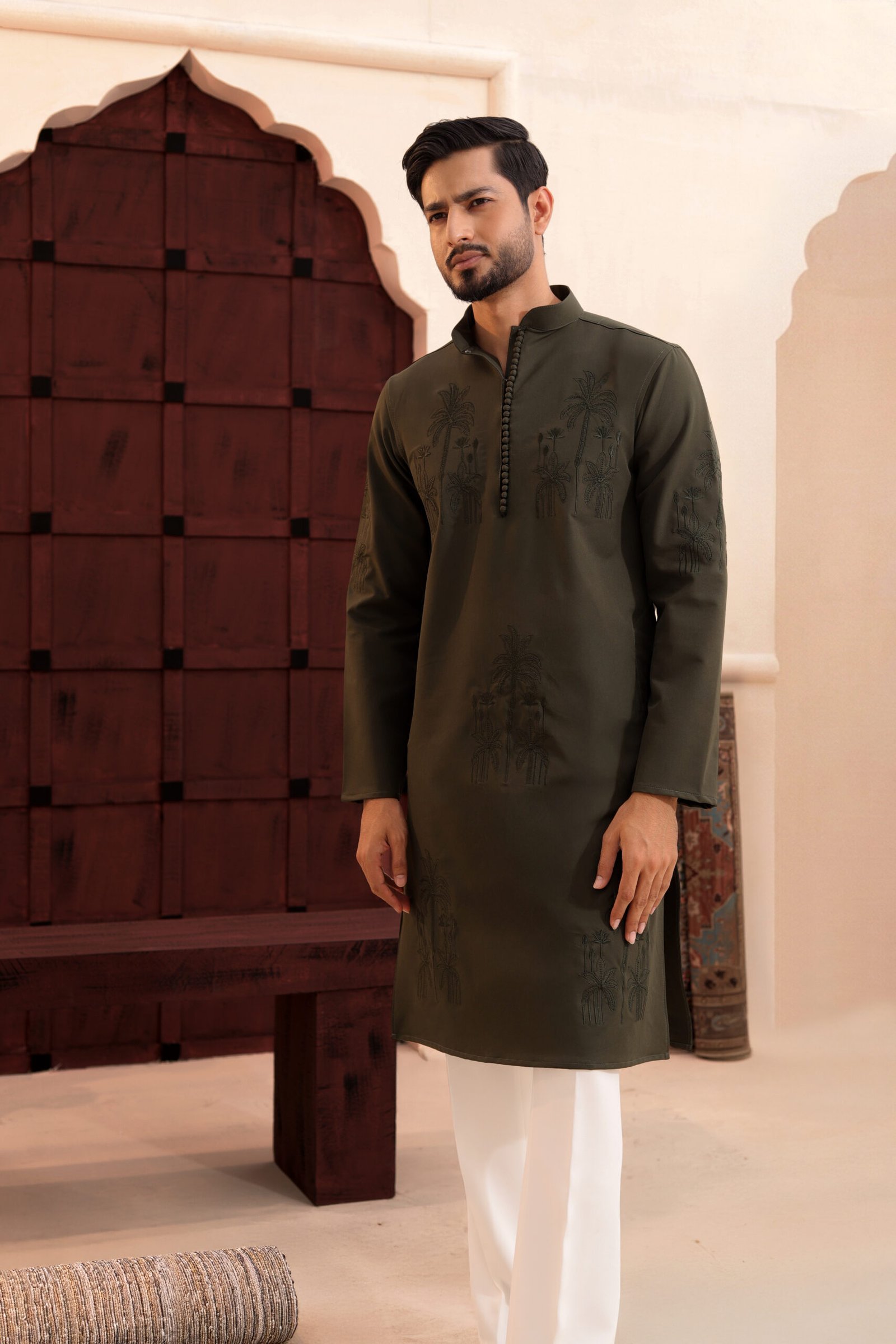 Crafted in a refined sable hue with intricate embroidery. A silhouette defined by structure, restraint, and heritage craftsmanship.