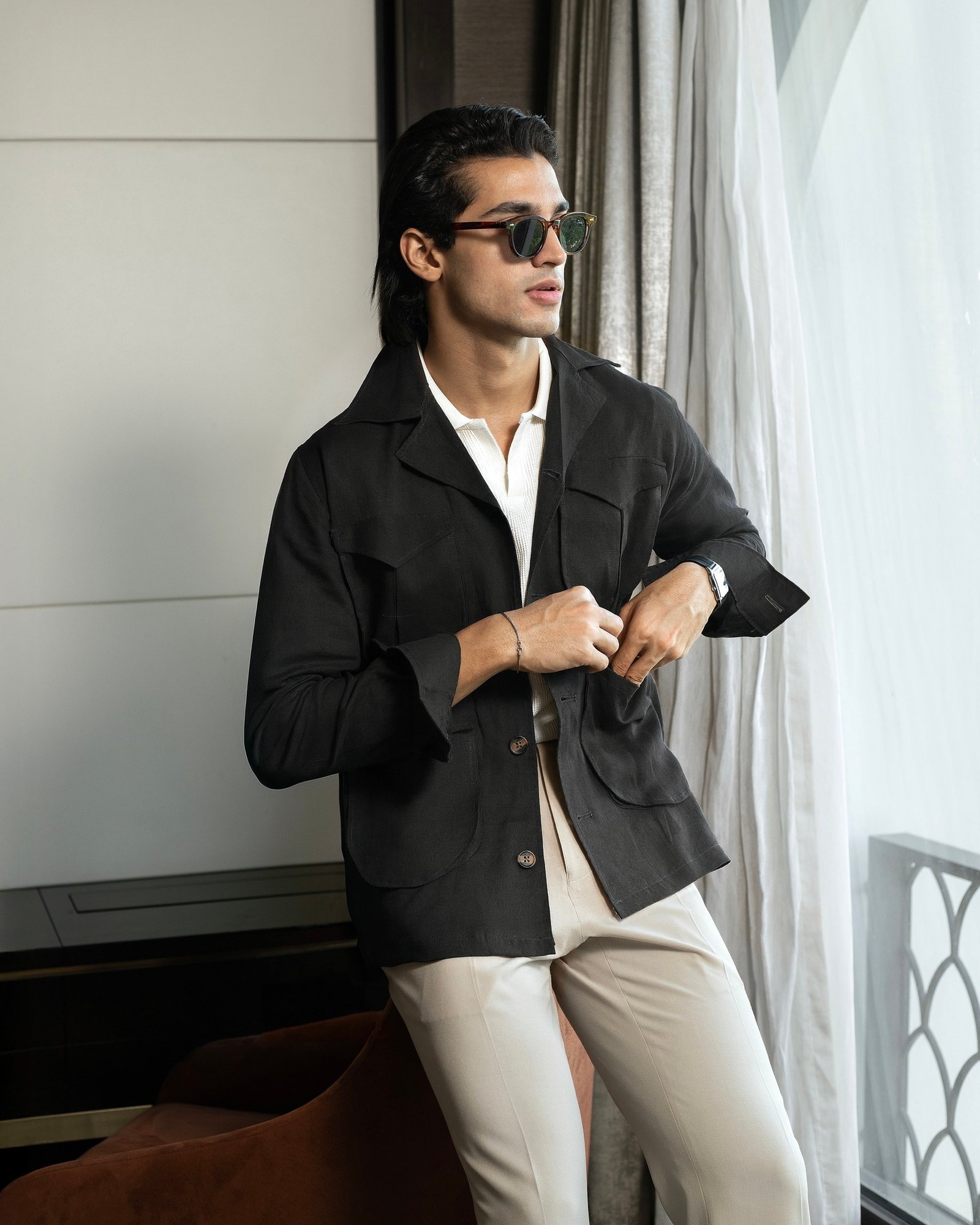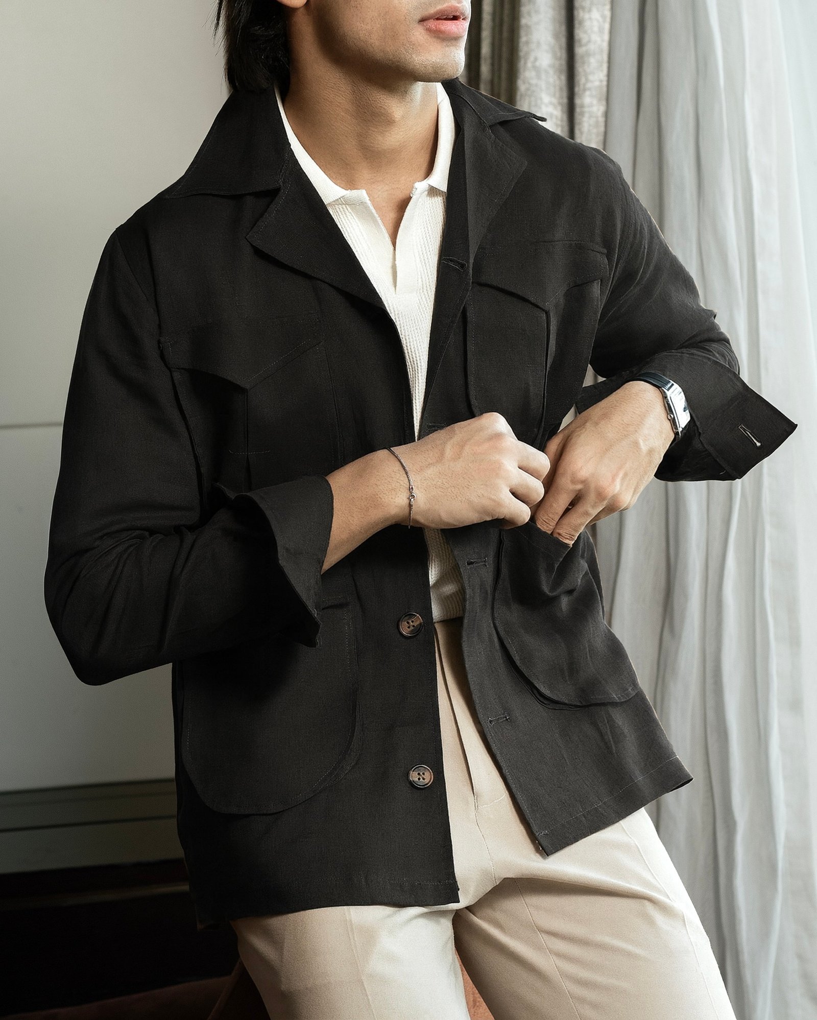 Introducing the quintessential Safari Jacket. Crafted from naturally breathable linen, making it your ultimate companion for warm-weather travel and stylish city days. Featuring four utility pockets and a relaxed silhouette.