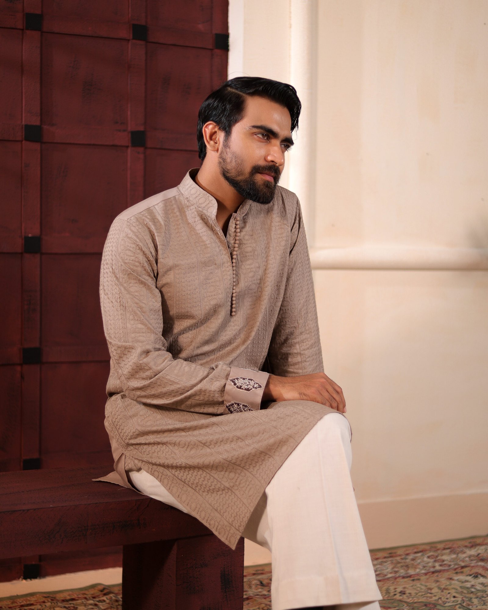 Crafted in a refined obsidian hue with intricate embroidery. A silhouette defined by structure, restraint, and heritage craftsmanship.